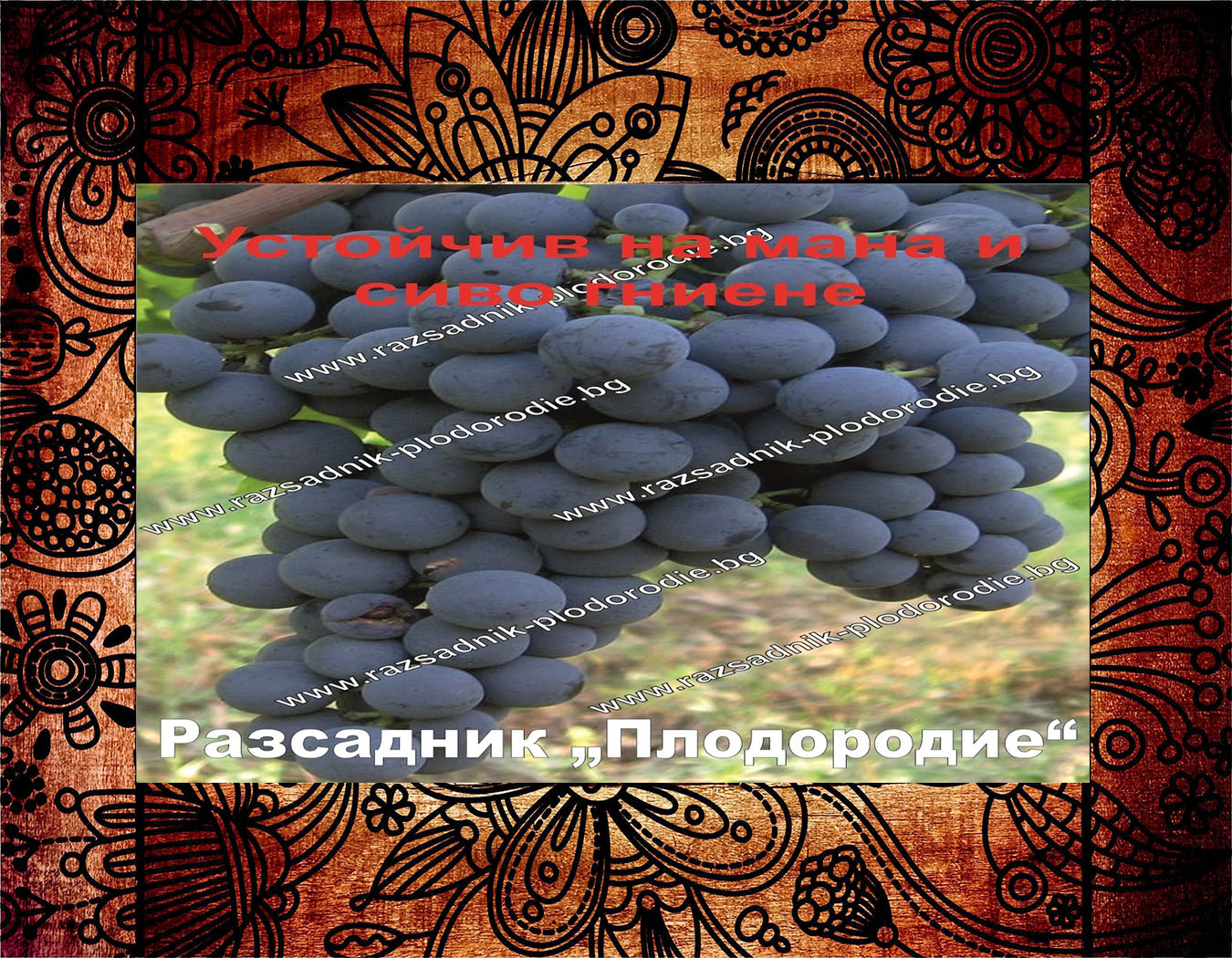Устойчиво на болести захарността достига до 26%. Лозите от този сорт са традиционни за разсадник Плодородие.